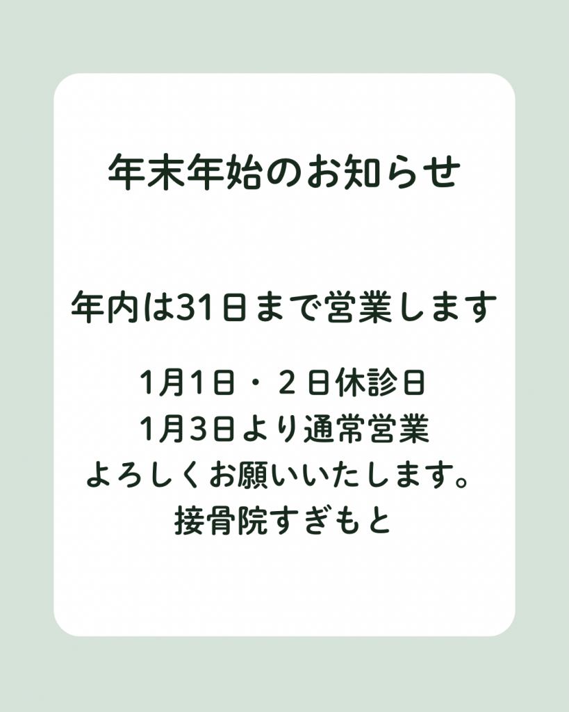 年内は31日(午前のみ)まで営業します。